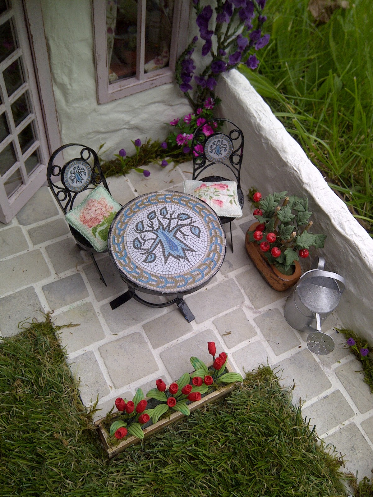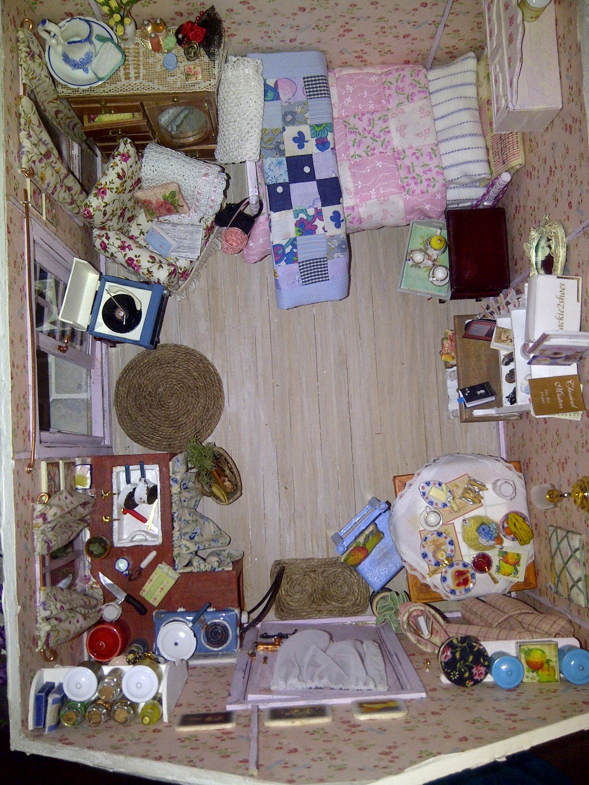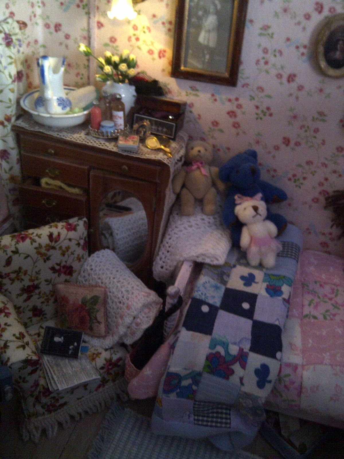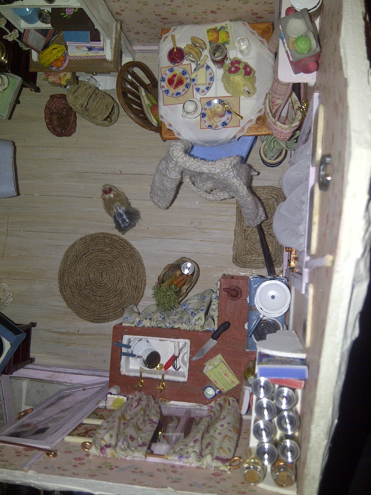 I loved making this little cottage, I made or modified most of the furniture within and I created lots of the tiny minis that give it detail and I also have lots of beautiful minis made by other artists in here too.